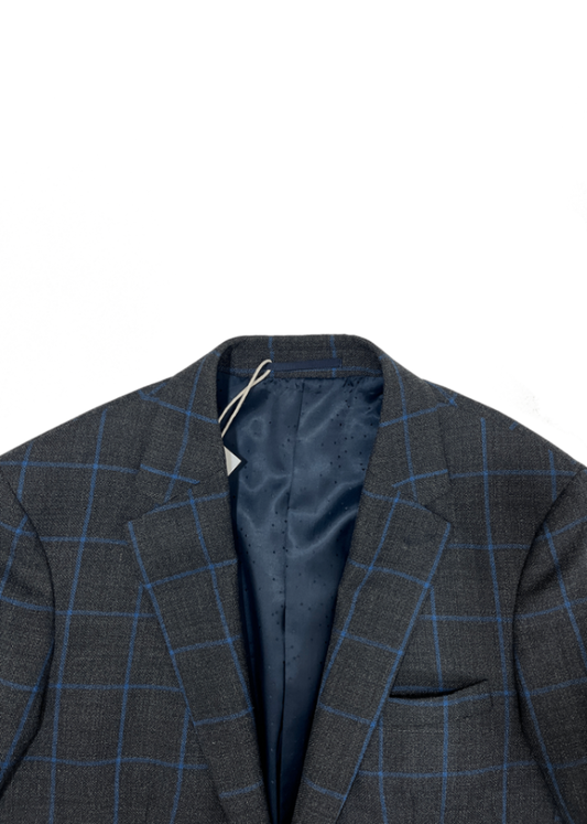 'Evert' Navy Plaid Wool Blazer/ Size 40