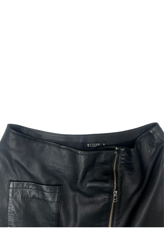 Asymmetrical Zip Leather Mini Skirt Black / Size 38