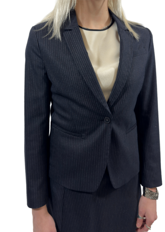 Isazo Navy Chalk Stripe Skirt / Size 36