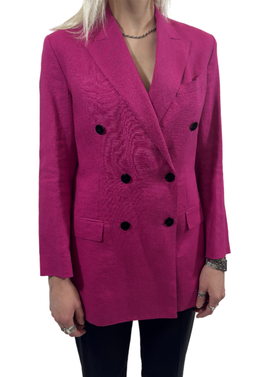 Double Breasted Tailored Pure Linen Jacket Fuschia / Size 4