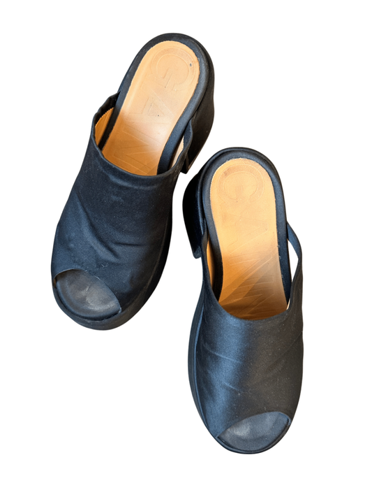Satin Platform Mules Black / Size 39