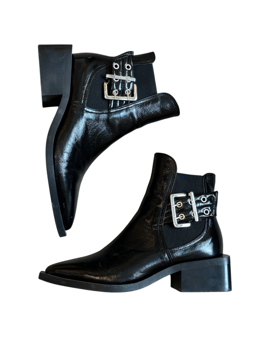 Patent Leather Buckle Chelsea Boots / Size 39