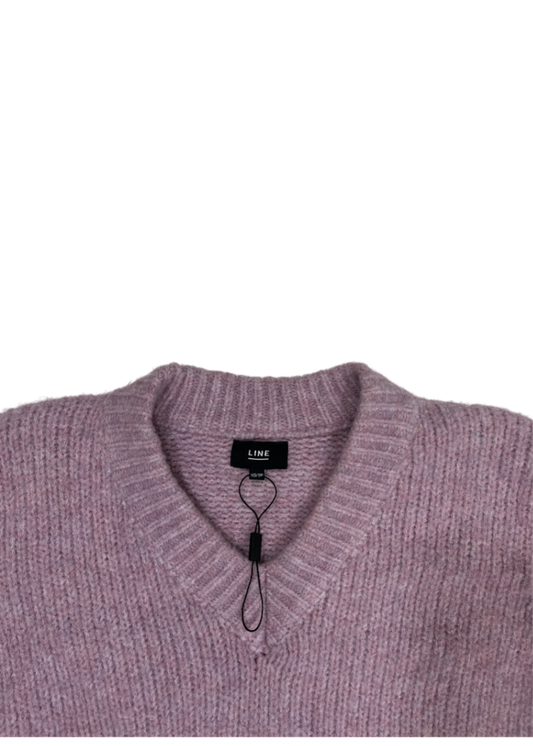 Relaxed V-Neck Knit Sweater Pink / Size XS