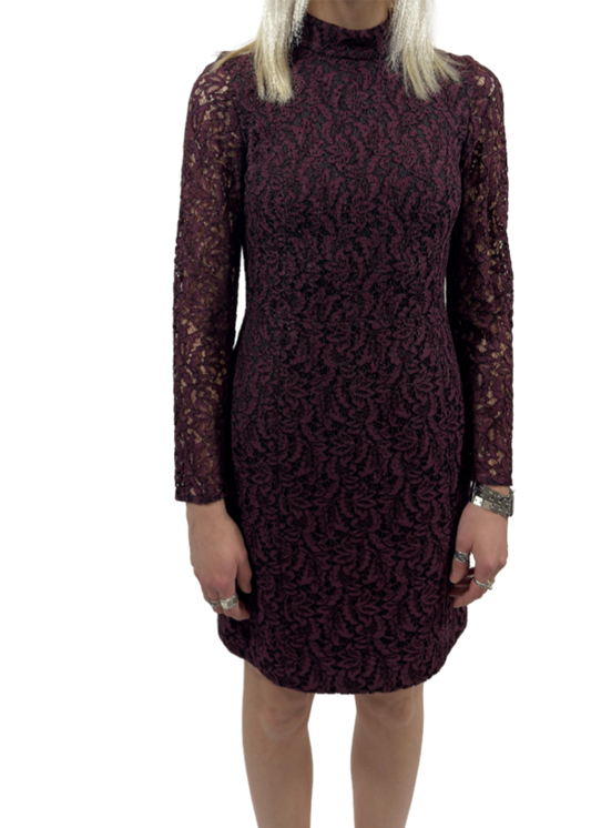 Long Sleeve Mockneck Lace Dress Burgundy / Size 4