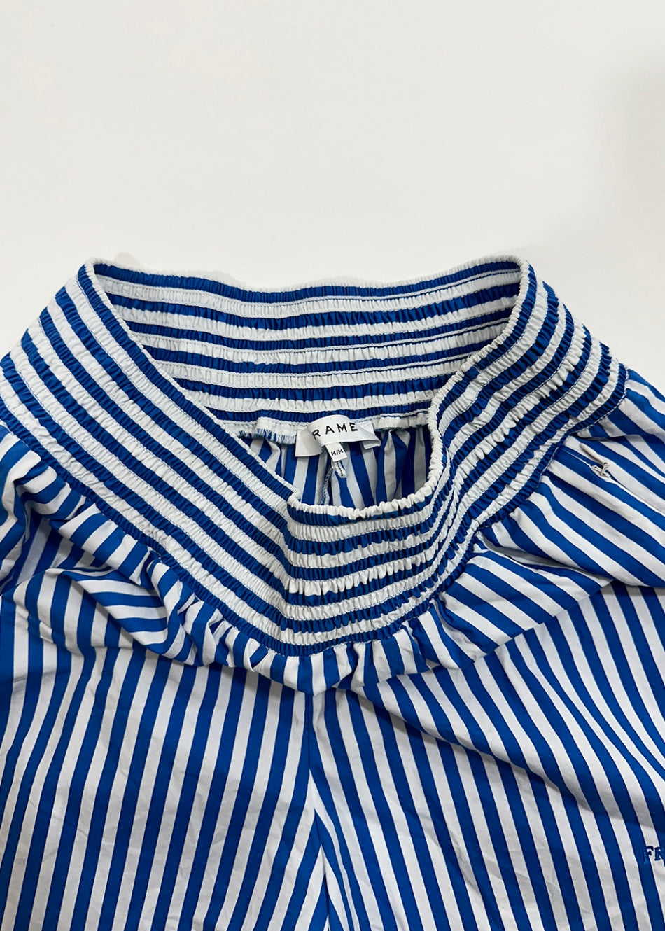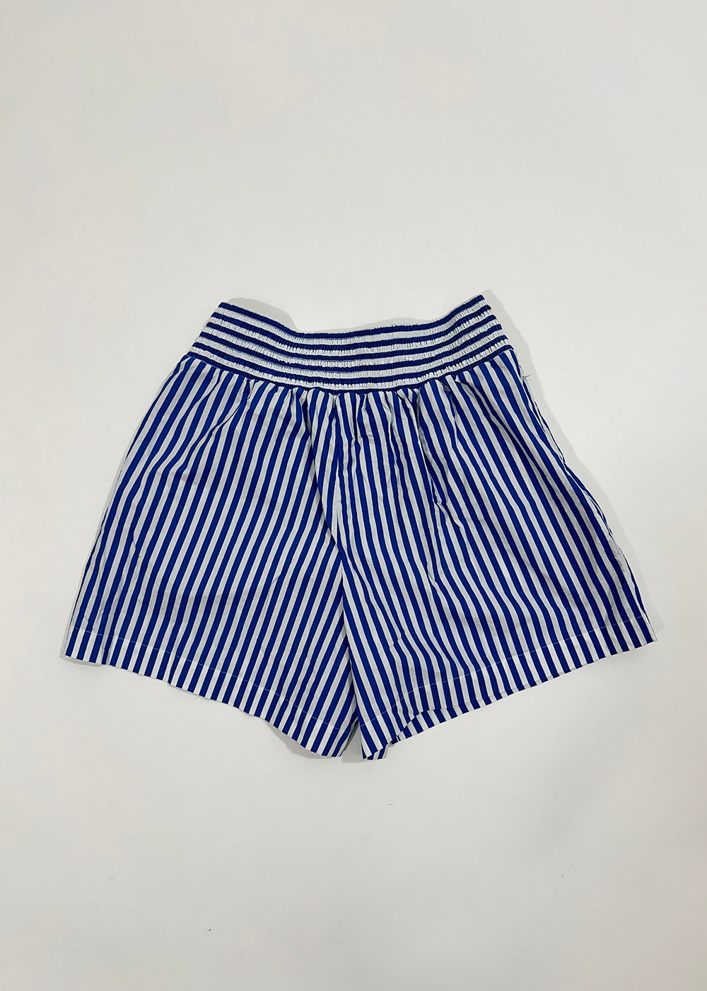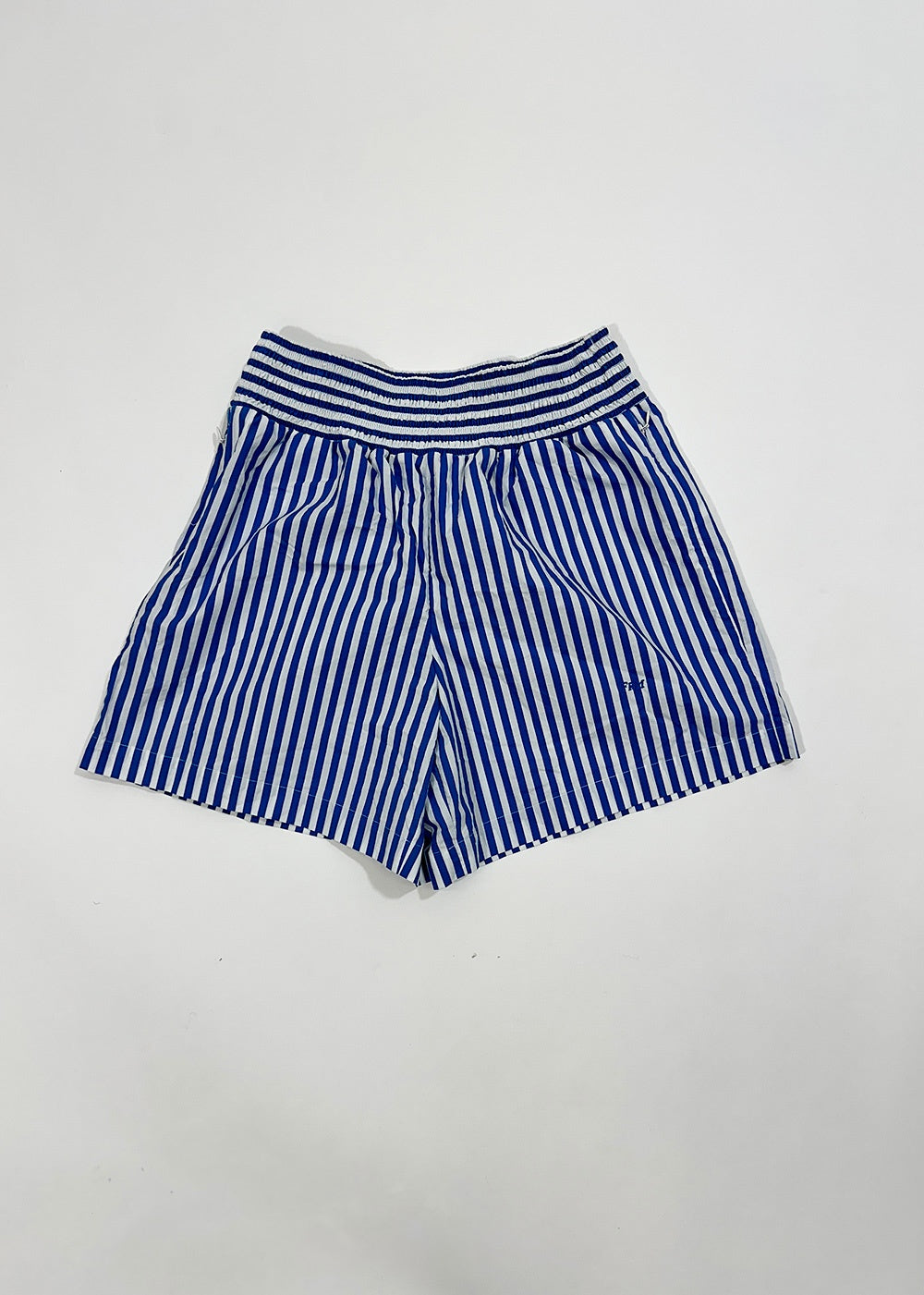 Women's blue/white striped organic cotton boxer shorts by Frame.