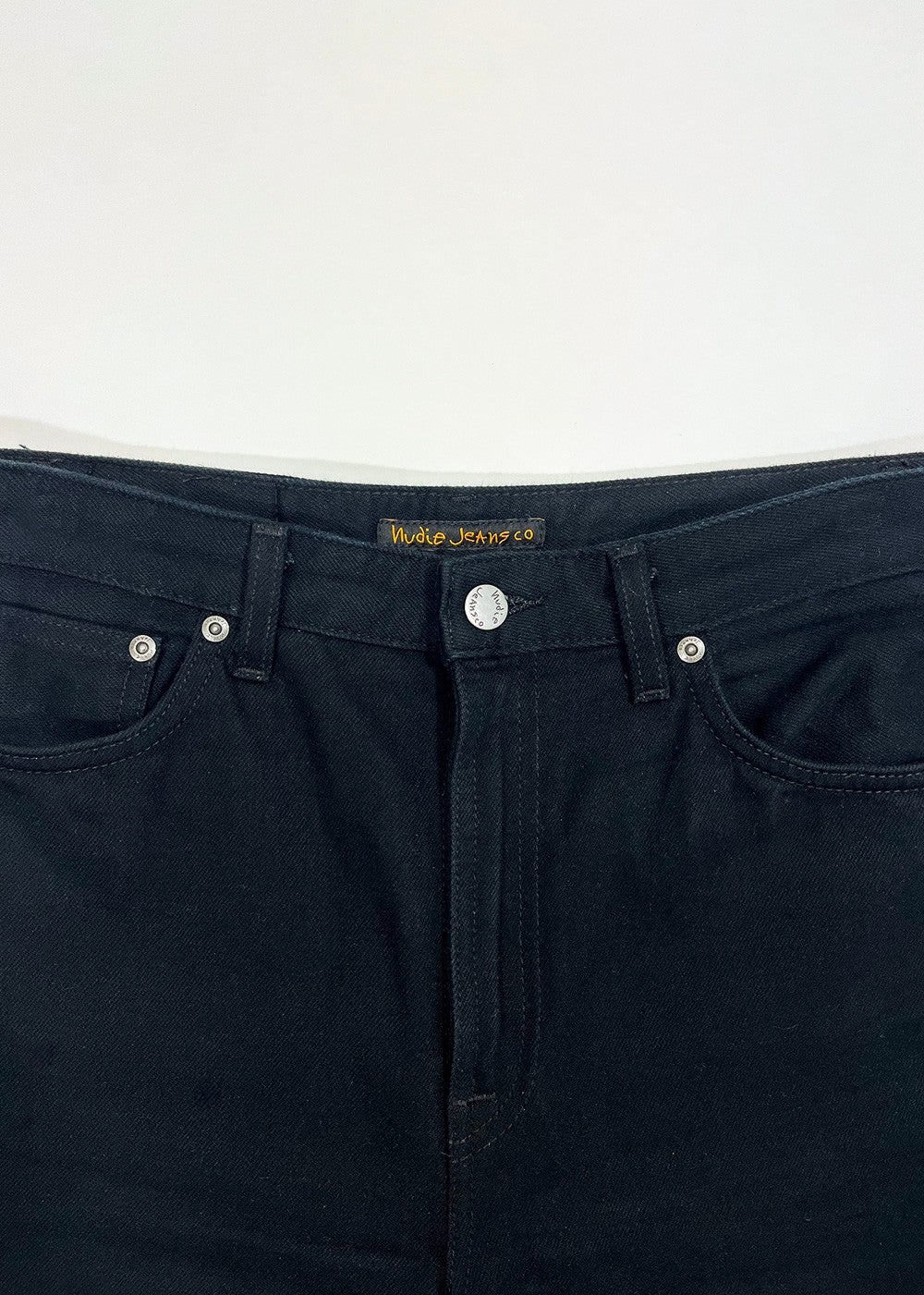 Women's Breezy Britt in Dry Everblack Jean by Nudie Jeans featuring a high rise, zip fly, tapered straight leg.