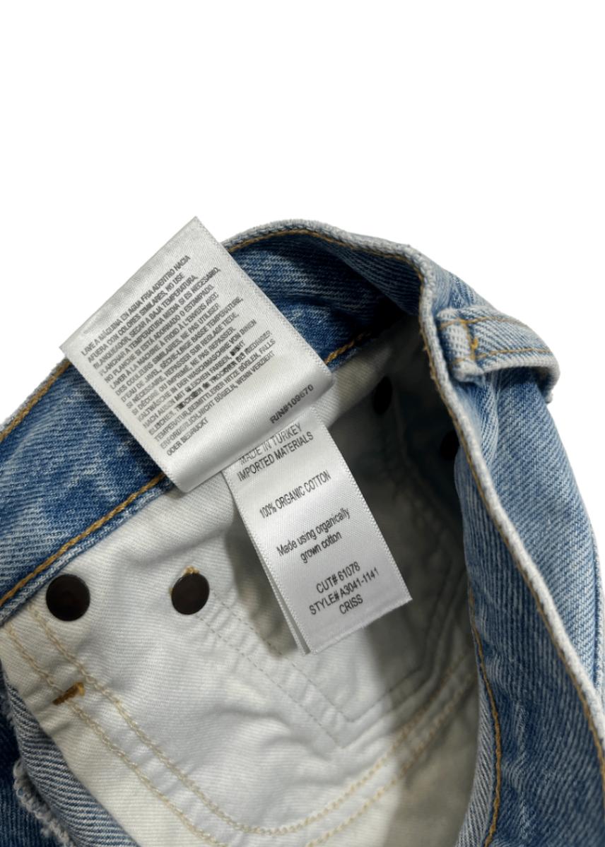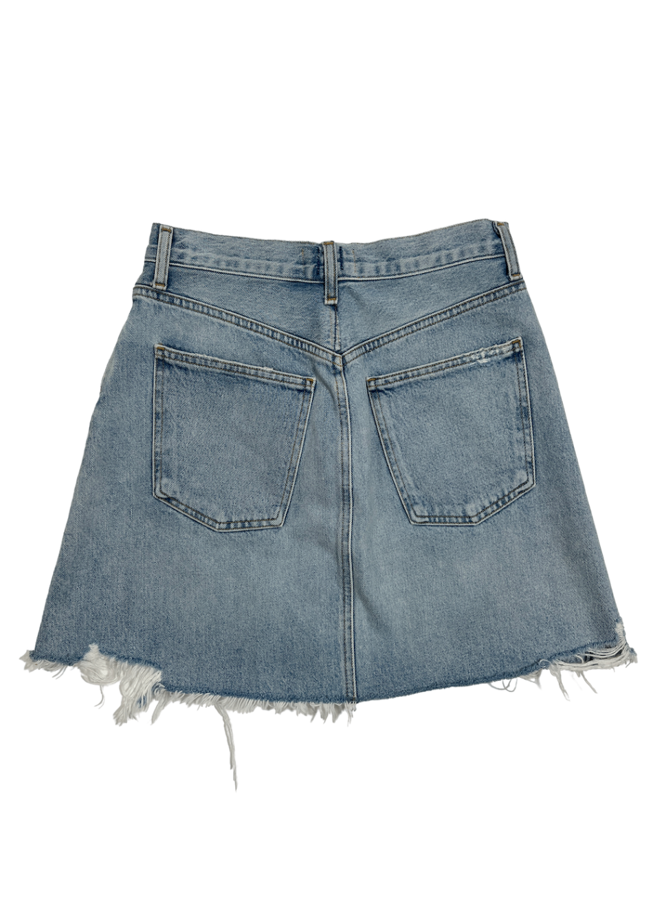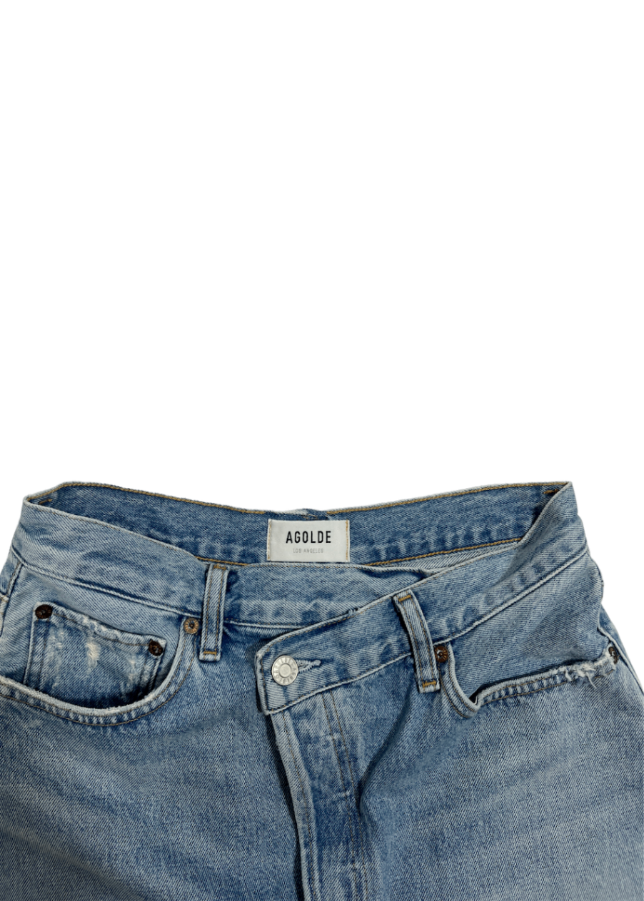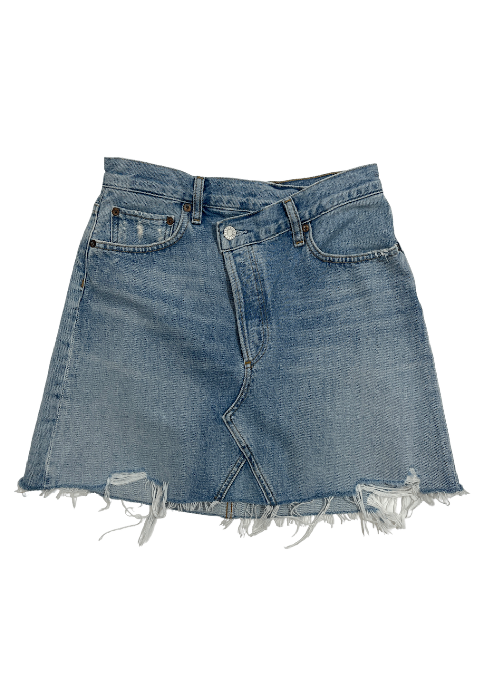 Womens's light wash denim criss cross skirt by AGOLDE.