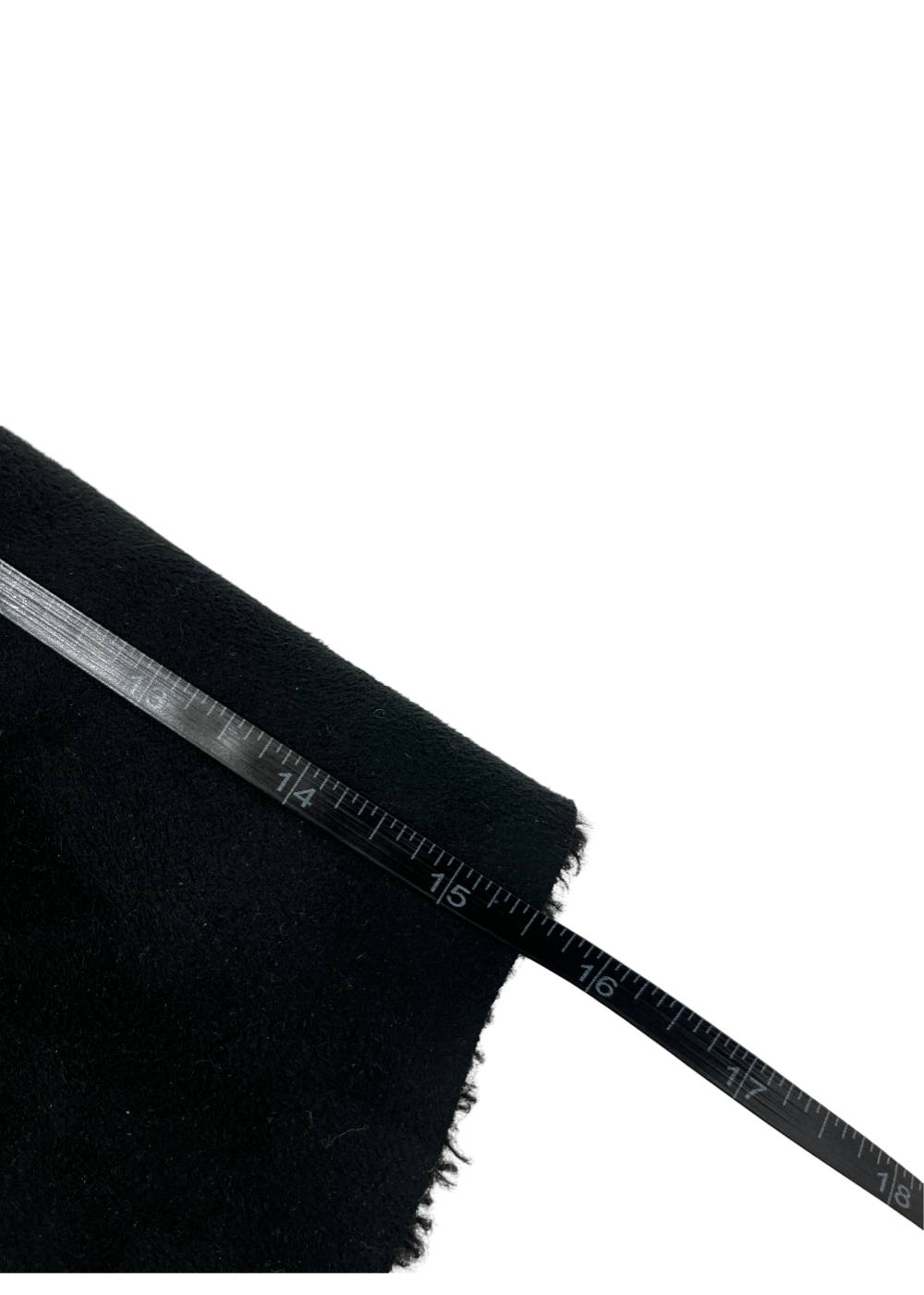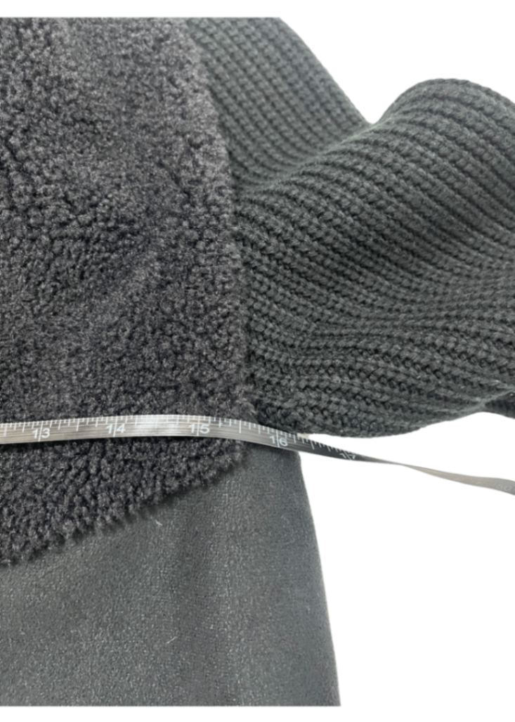 Women's open front faux fur collar jacket by John + Jenn in black with knit sleeves.