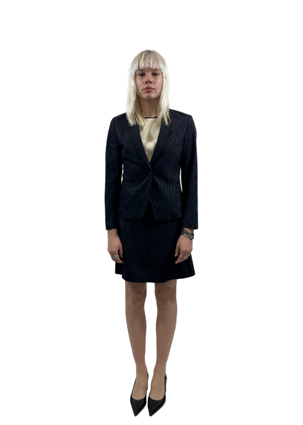 Isazo Navy Chalk Stripe Skirt / Size 36