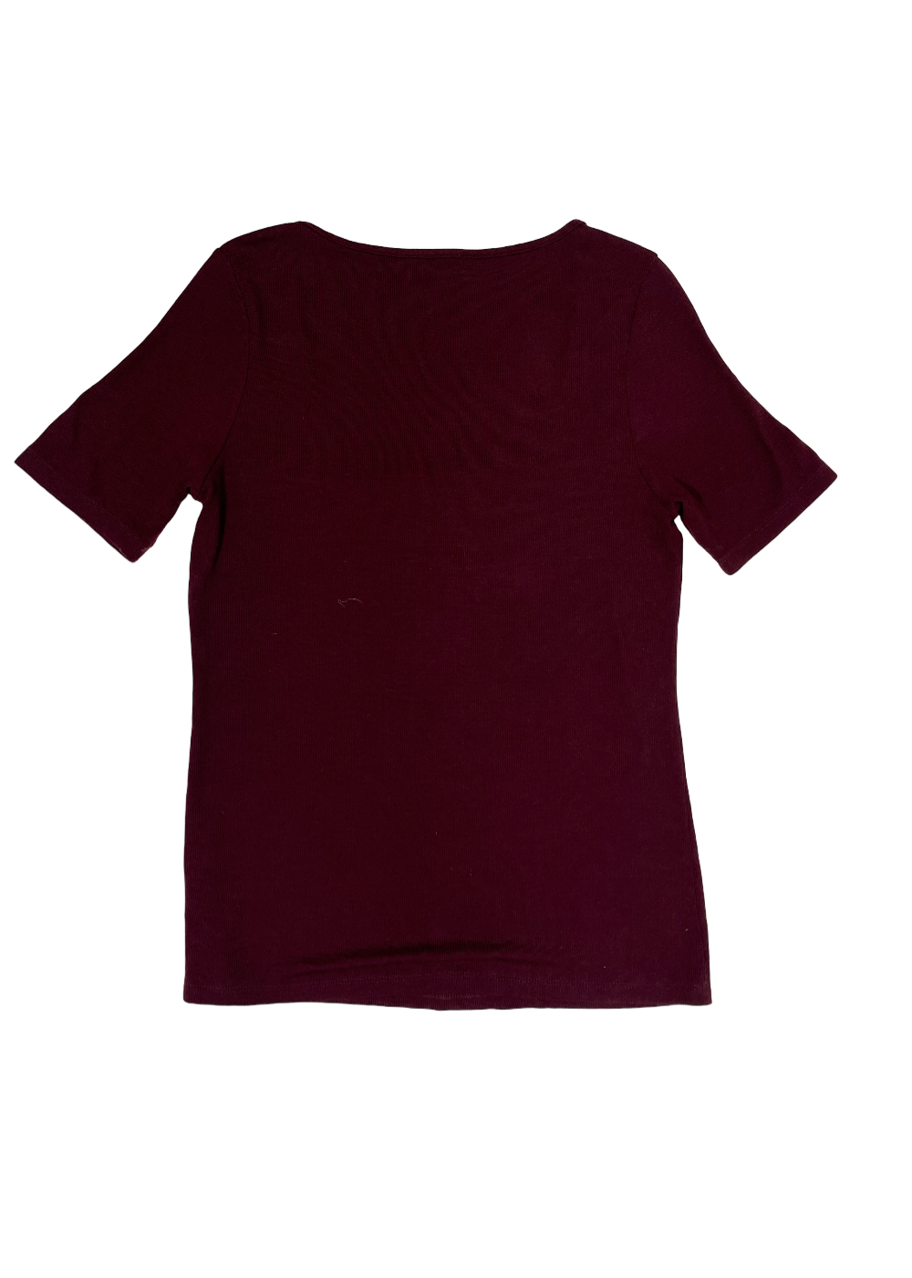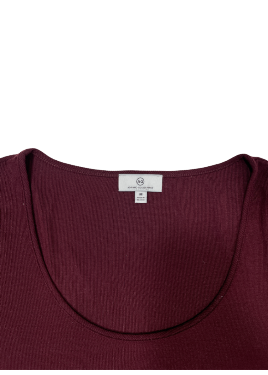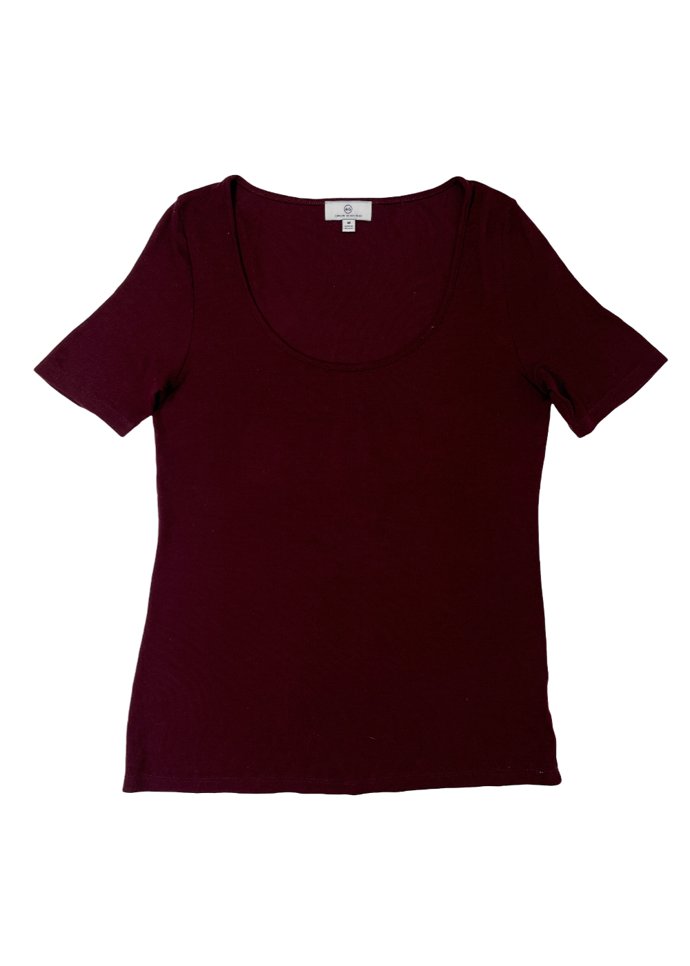 Women's scoop neck ribbed t-shirt in burgundy by AG Jeans.