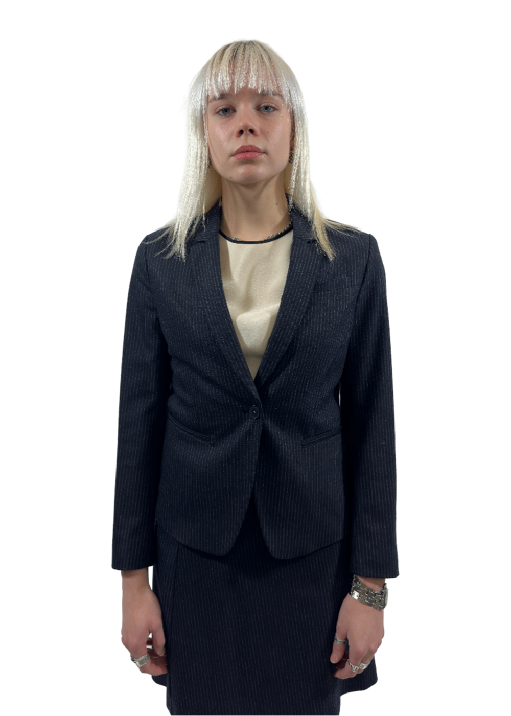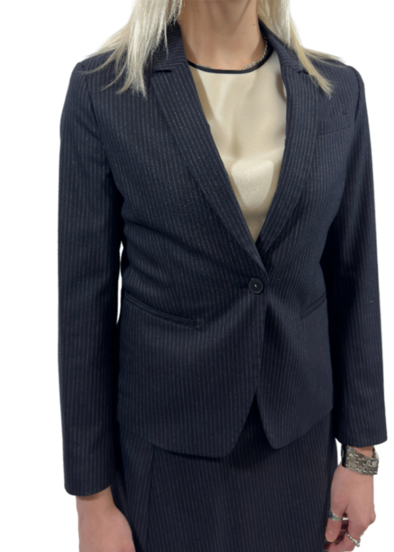 Kana Navy Chalk Stripe Blazer / Size 34