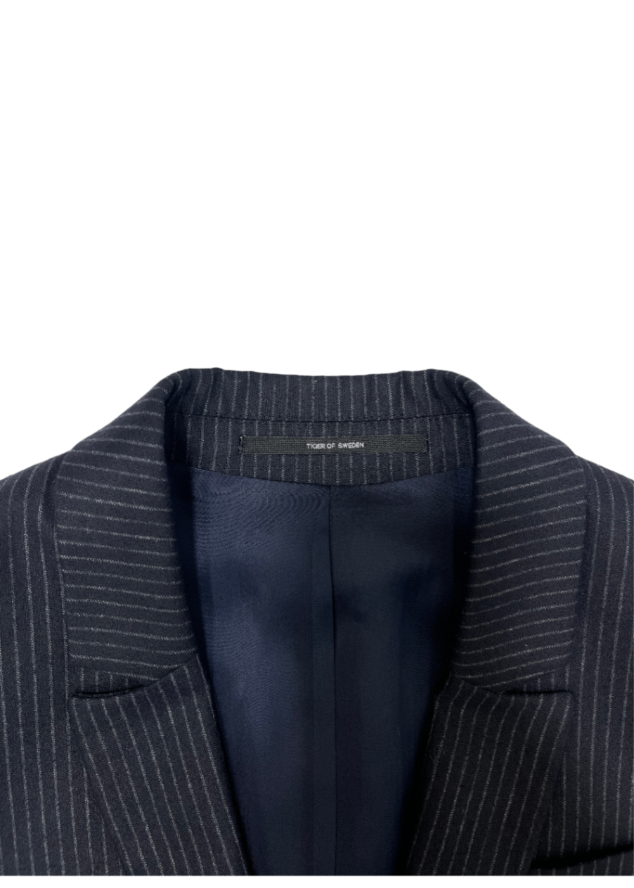 Women's 'Kana' classic blazer by Tiger of Sweden in navy chalk stripe.