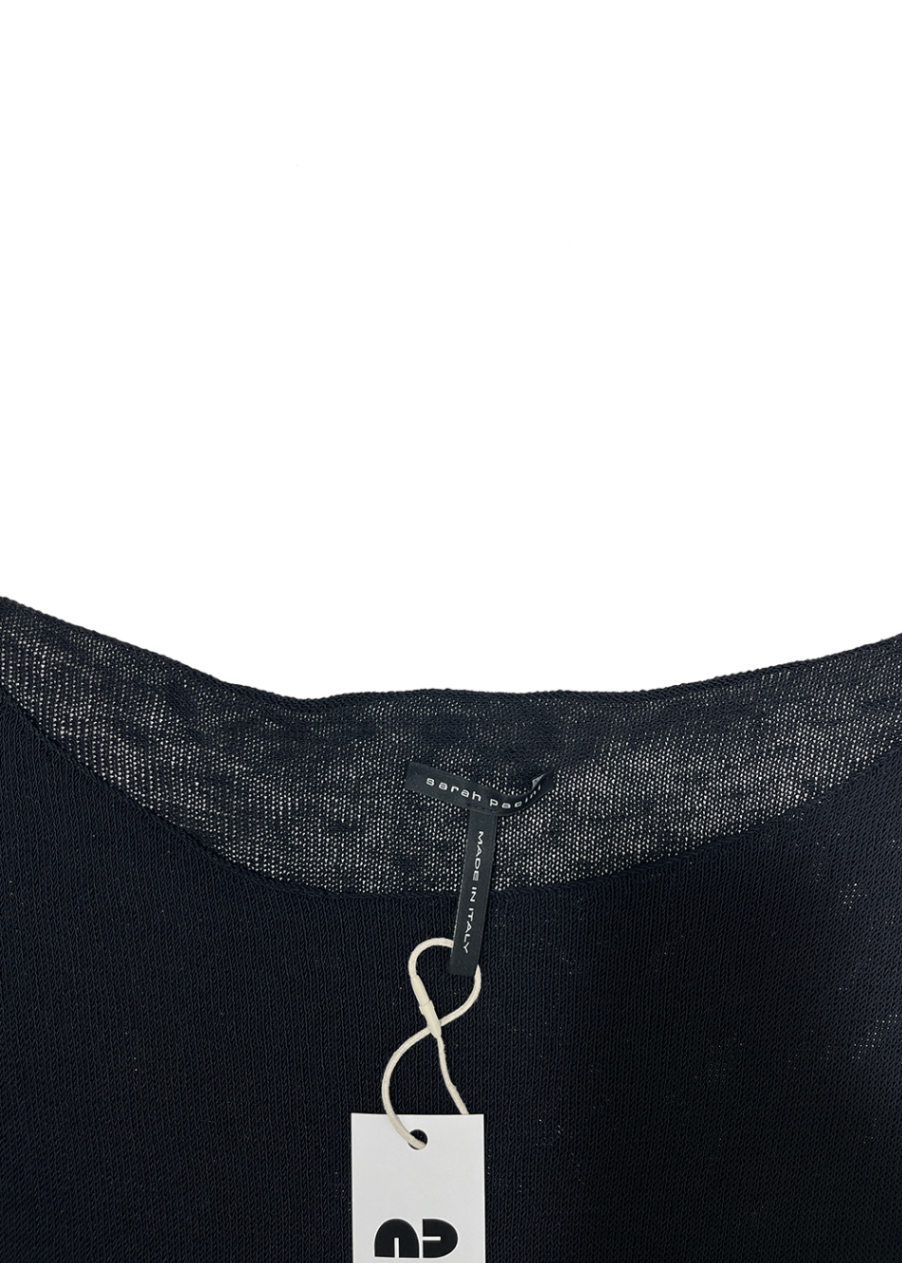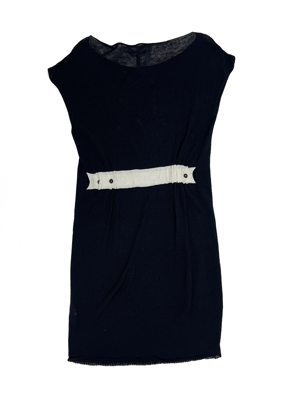 Women's easy-wearing linen blend knit dress by Sarah Pacini in black with contrasting white waist detail on back.