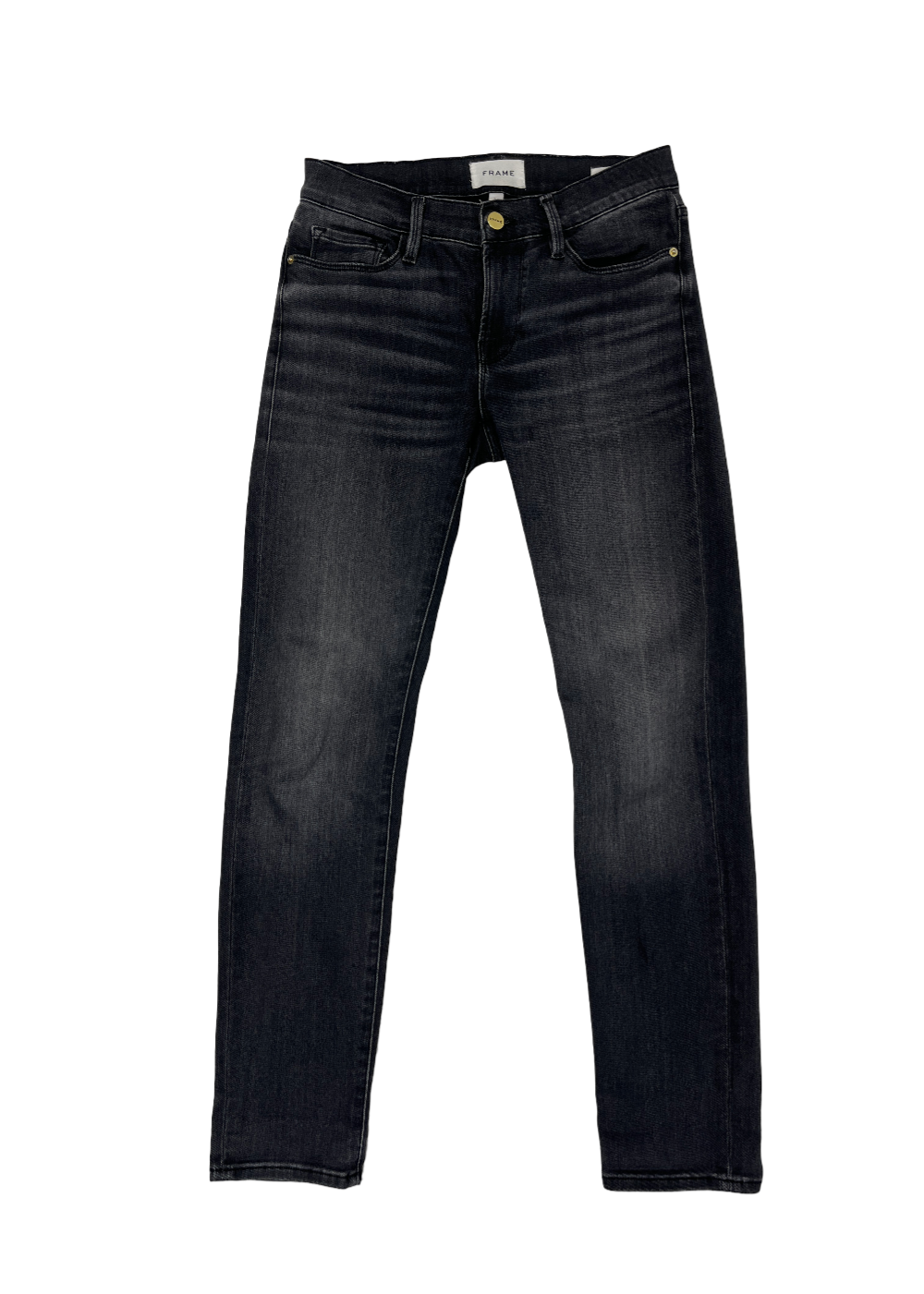Women's le garçon boyfriend jean from Frame in 'Cheyenne' washed black features a mid rise and slim leg.
