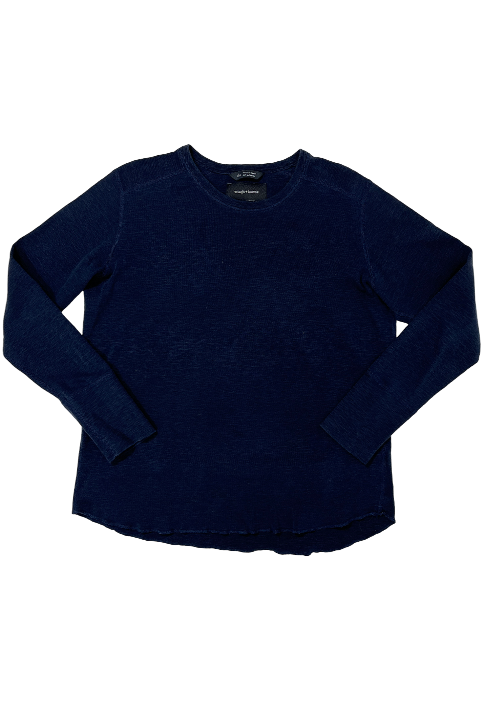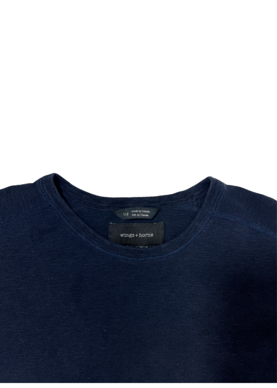 Men's long sleeve slub henley t-shirt in navy, made in Canada by wings+horns.