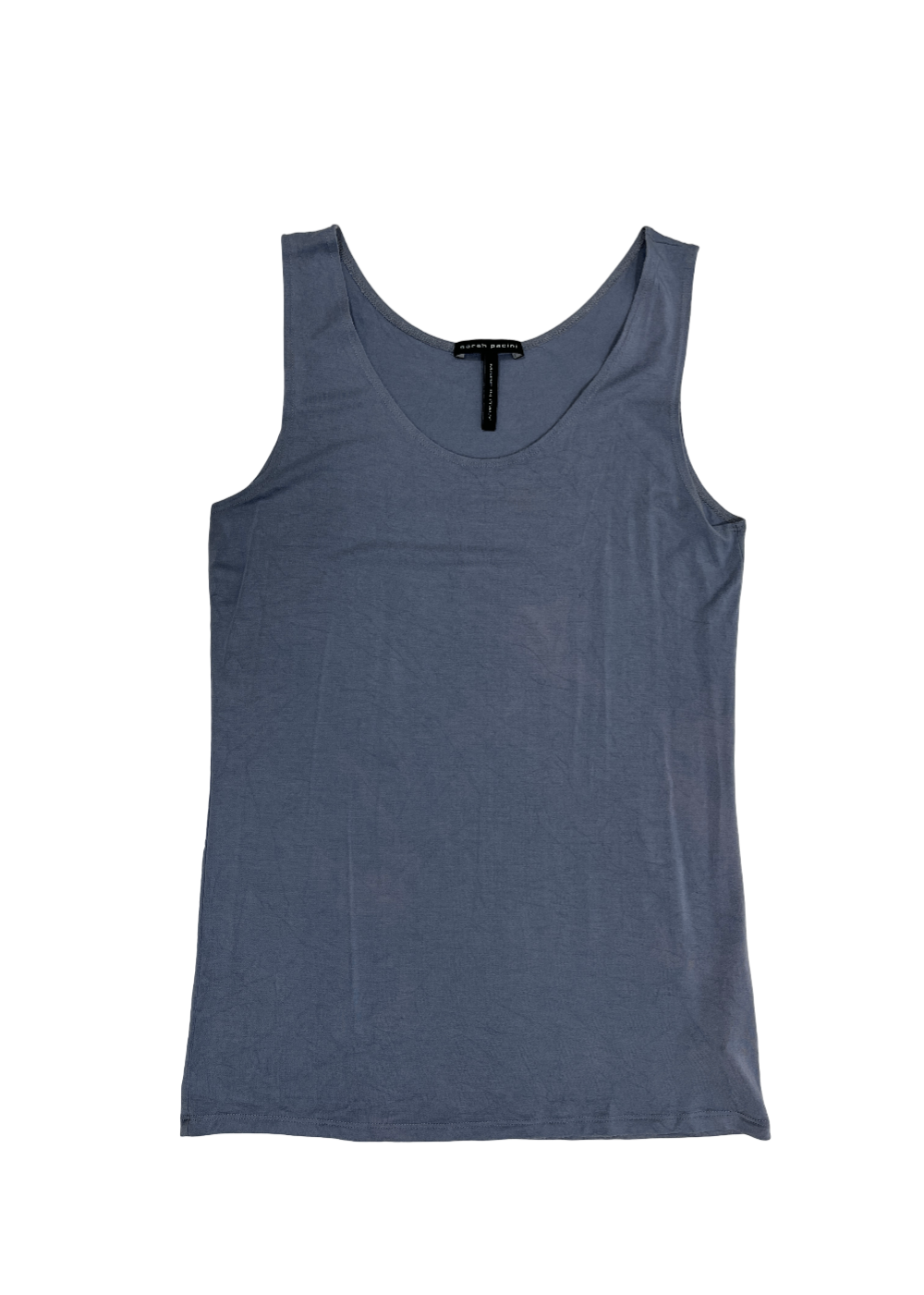 Women's super soft sleeveless tank top in steel blue, made in Italy by Sarah Pacini.