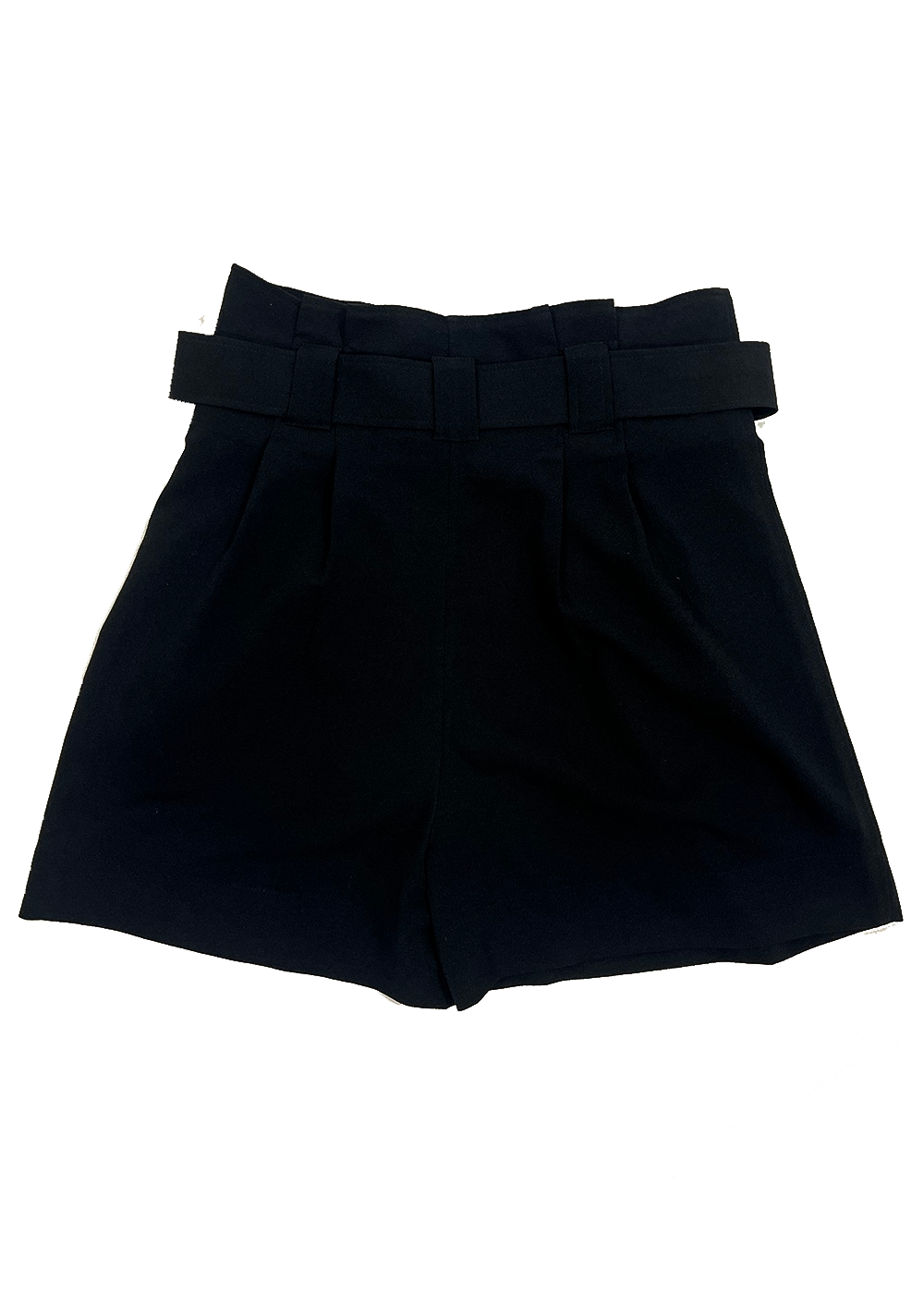 Paperbag Waist Belted Crepe Shorts / Size 38