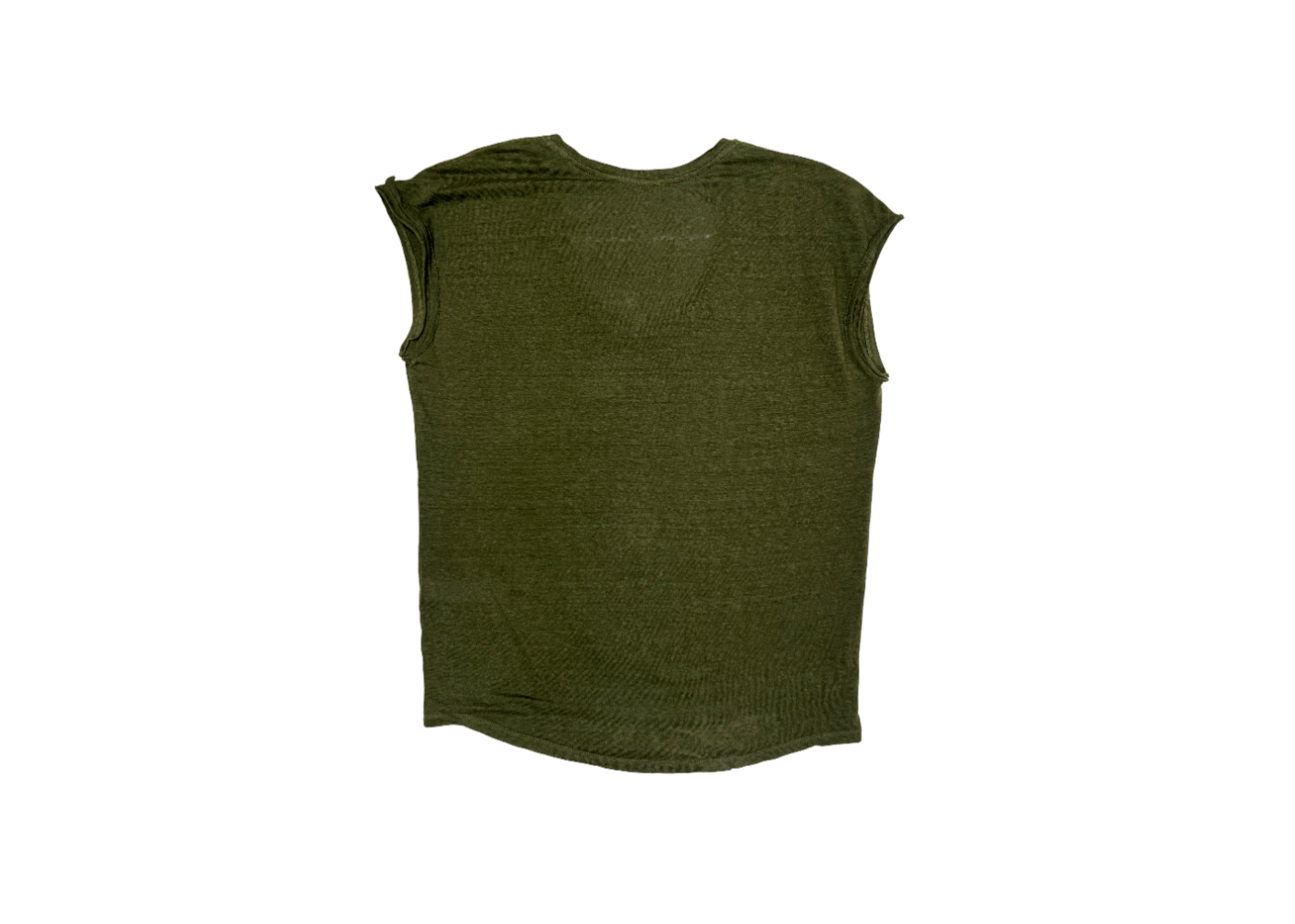 Women's scoop neck relaxed easy short sleeve tee by Frame in 'Fatigue' olive green.