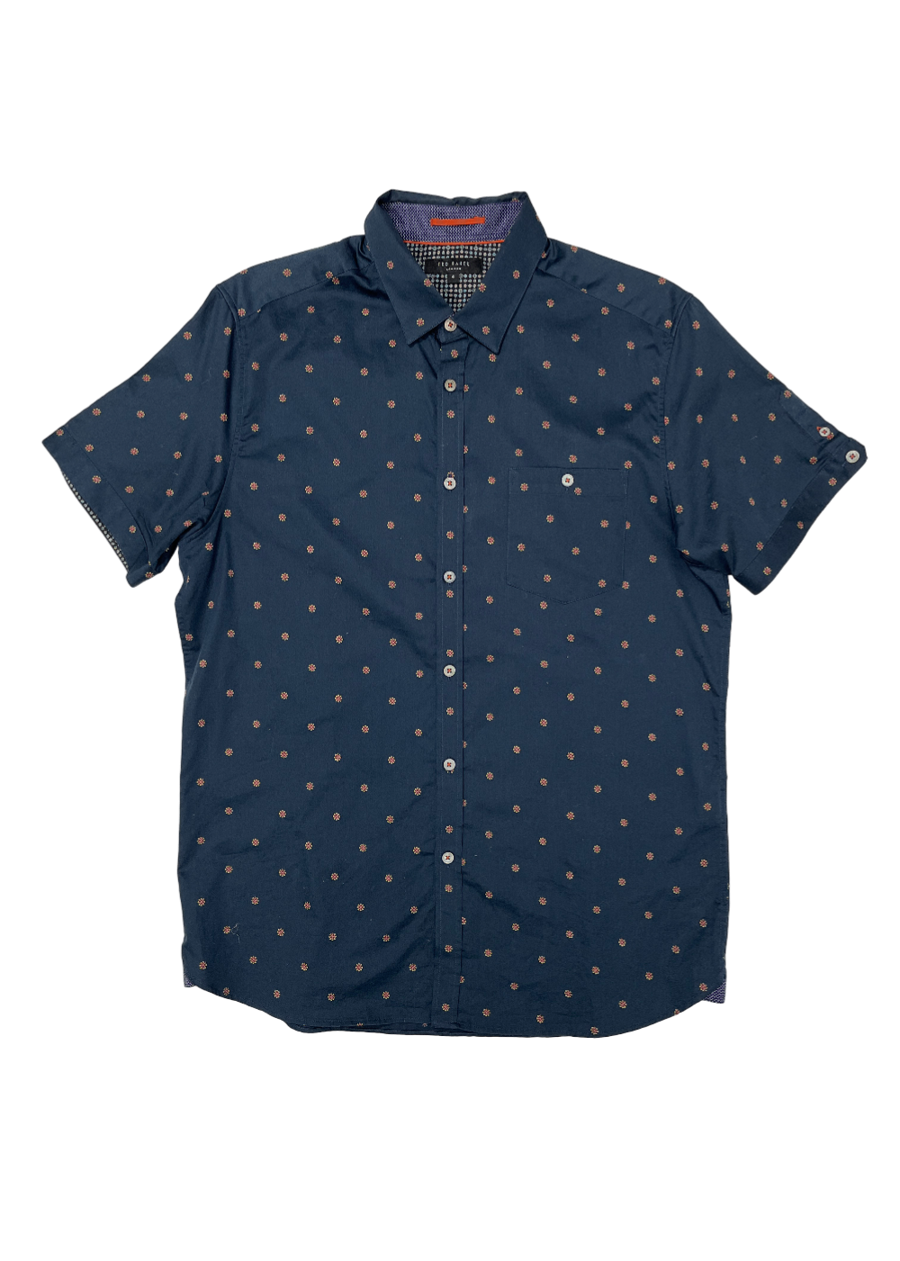 Men's short sleeve button up floral shirt in navy by Ted Baker.