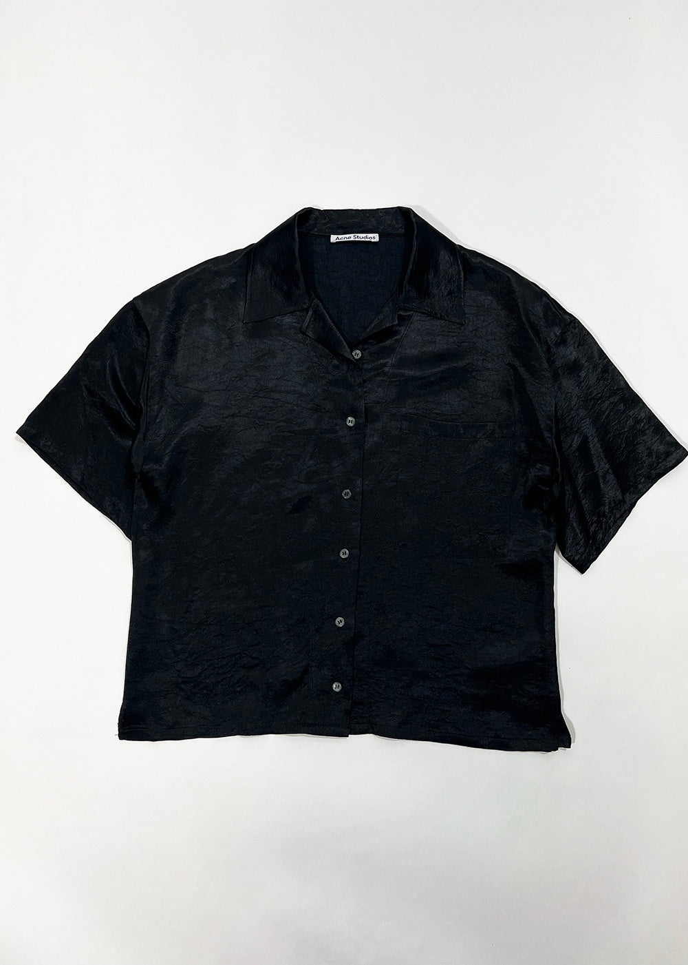 Women's relaxed fit satin blouse from Acne Studios with button closure and chest pocket.