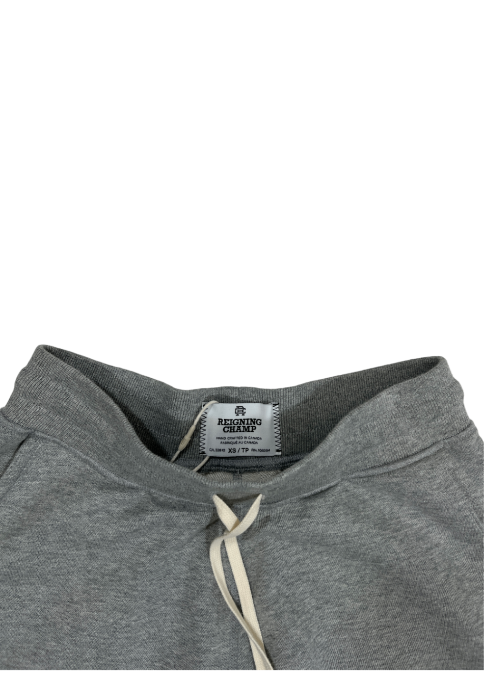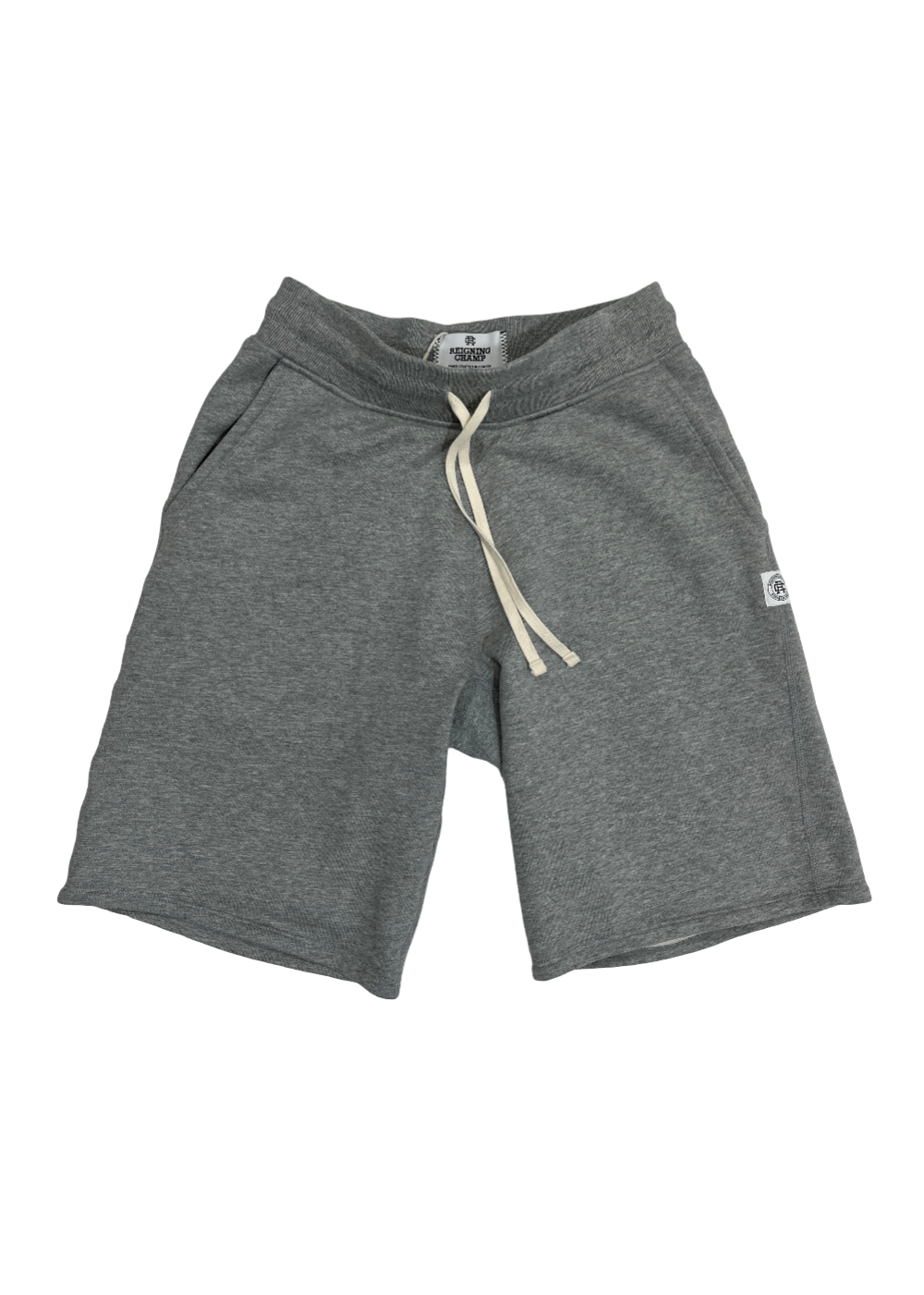 Men's midweight terry sweatshorts in heather grey, made in Canada by Reigning Champ.