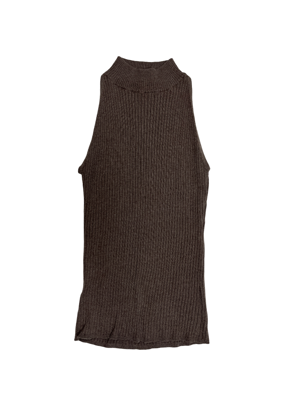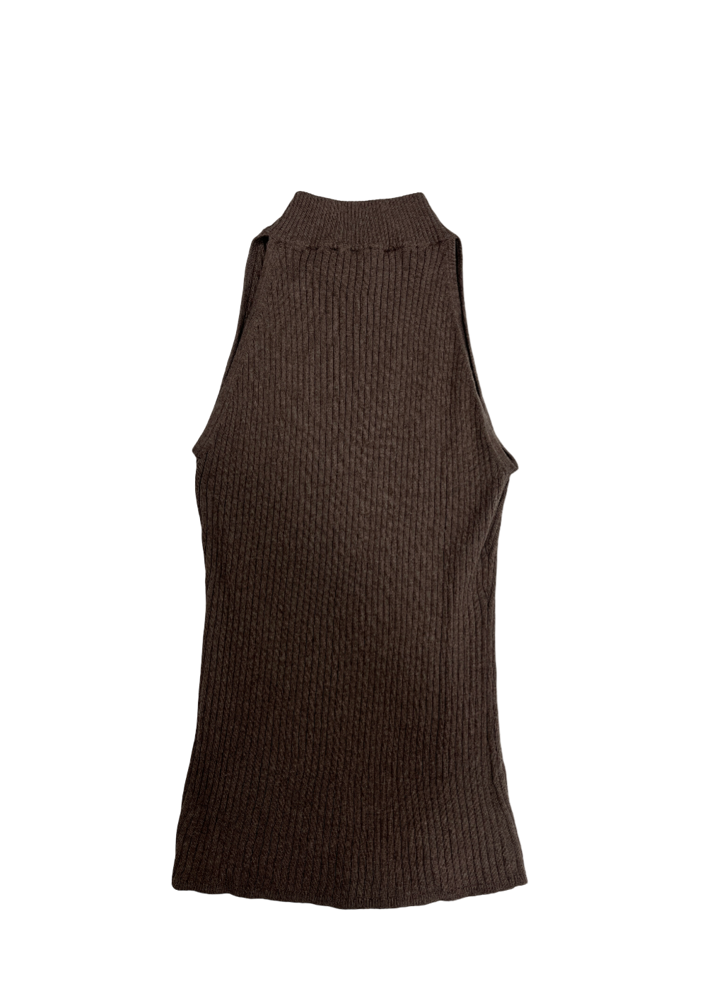 Sleeveless Ribbed Mockneck Top Brown / Size M