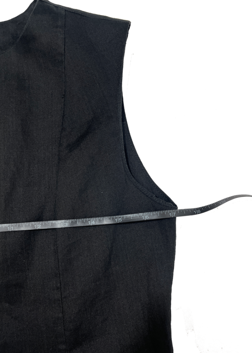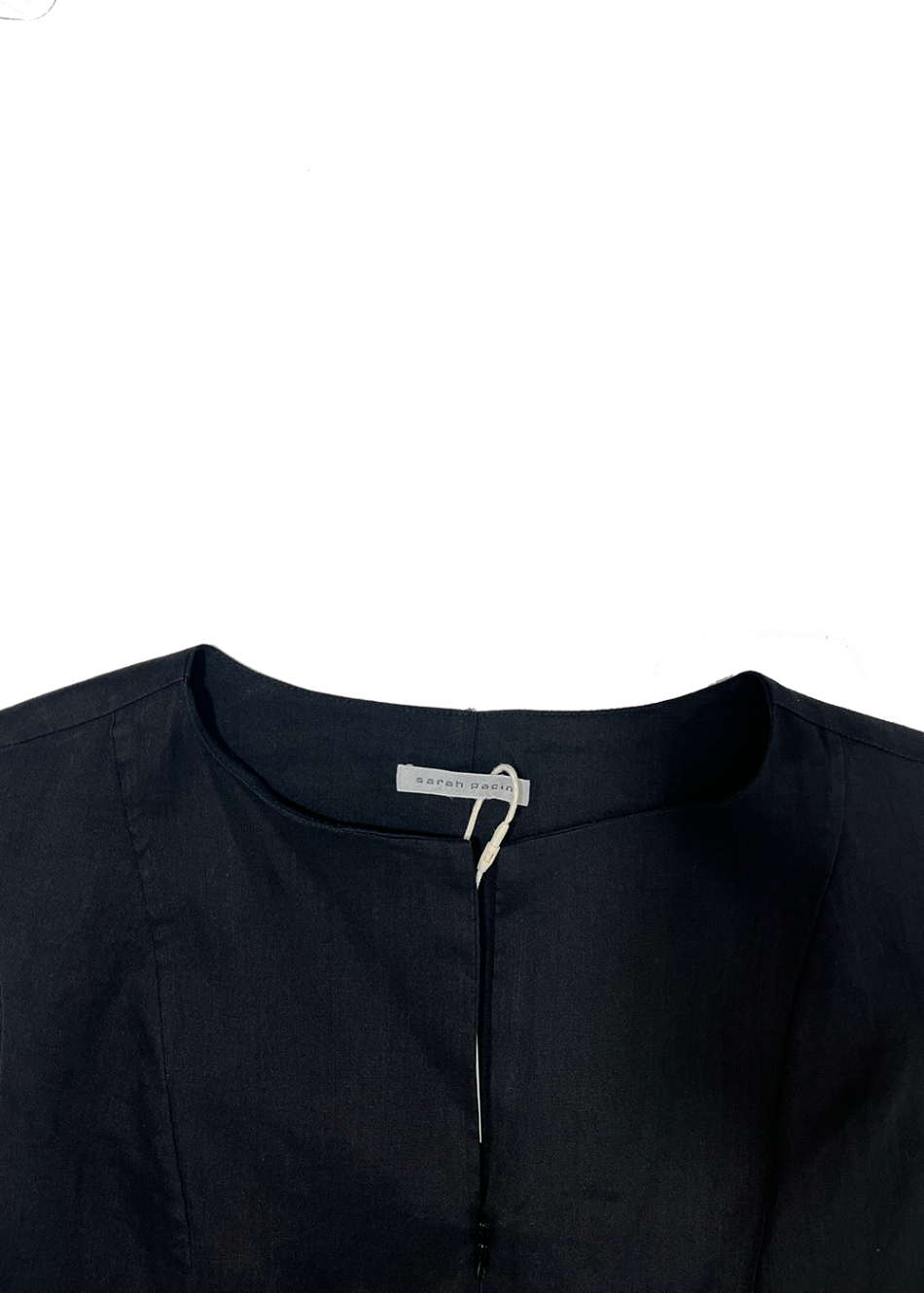 Women's sleeveless a-line dress in black with zip front neckline and side pockets, made in Italy by Sarah Pacini.